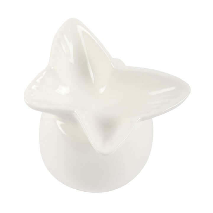 This elegant white ceramic oil burner features a butterfly shaped bowl topper, adding a delicate decorative touch while holding fragrance oil during use. Designed in a soft, sculptural style with a classic silhouette, it is perfect for creating a calming and thoughtful atmosphere in the home.
